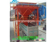 This equipment have two parts, up side parts and down side parts, because open mouth of feeding funnel is larger enough, so it is difficult for it to cause dust. And at the feed opening of hopper, have installed induced draft cover, so that it can avoid too much dust when loading material to trucks. All adsorbent dust will fall back to the parts of feed opening via back flushing of dirt catcher,
